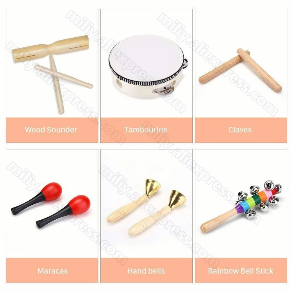 1 Set Orff Toys Musical Instrument Teaching Children's Kids Puzzle Percussion Tambourine Band Marac