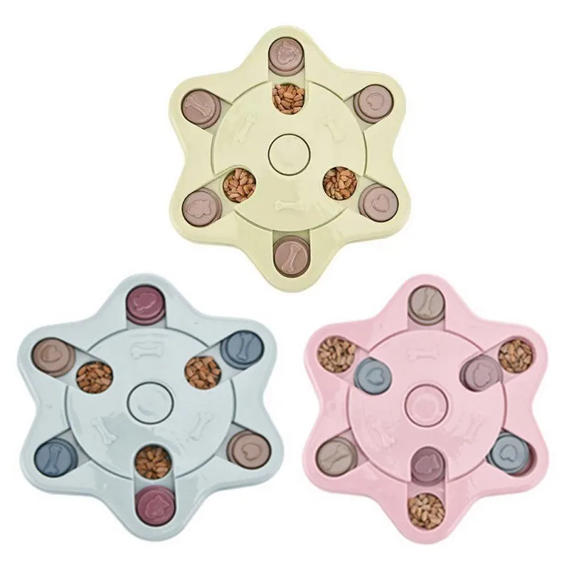 Pet Dog Hexagon Feeder Puppy Cat Plastic Eating Food Plate Cat Dog Leaking Food Interactive Puzzle