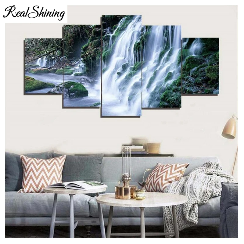 REVIEW TOP SELLER Diamond Embroidery Full Square Round Diamond Painting Cross Stitch 5 piece Waterfall nature Scenery