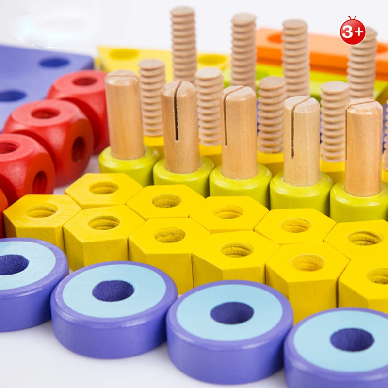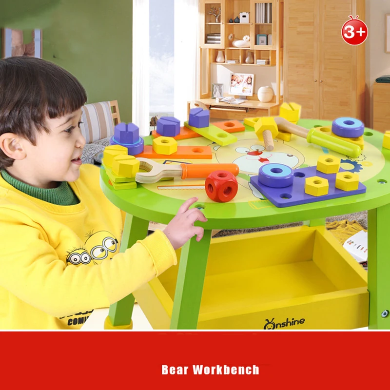 BEST Children's simulation wooden repair tool box puzzle nut building blocks assembled toys