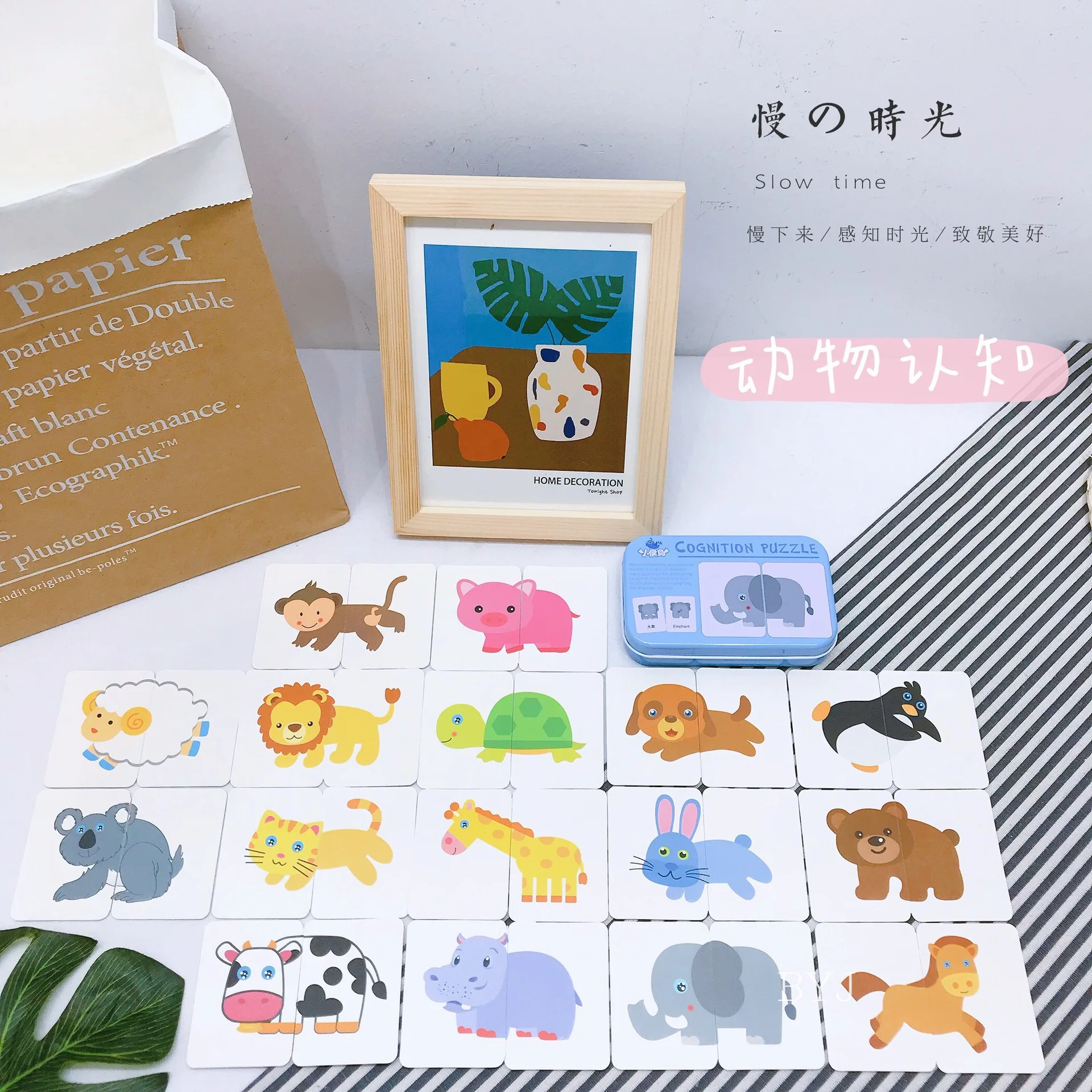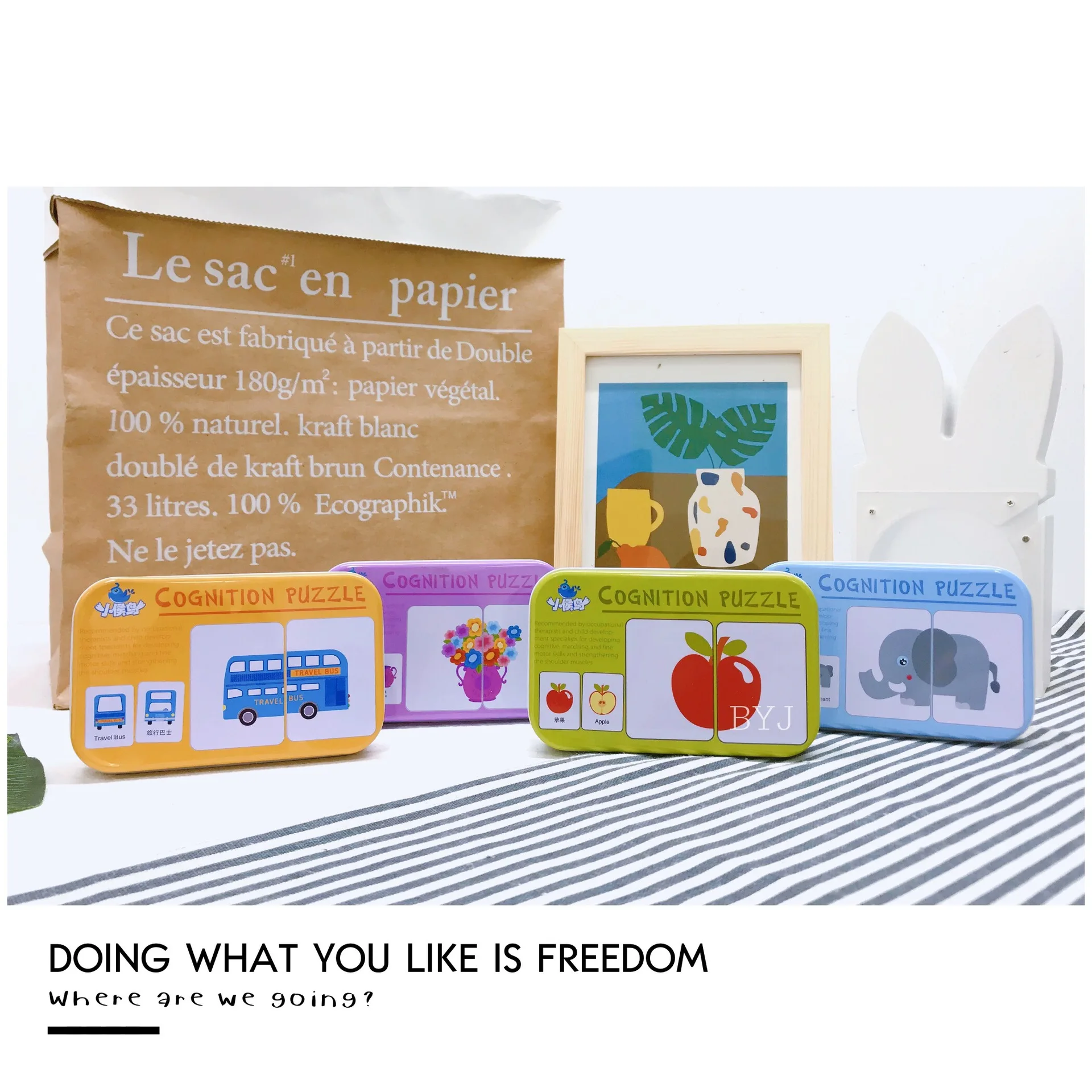 32 Card Infants Baby Tear Rotten Early Education Toy Children Reading Cognitive Card Iron Box Jigsa
