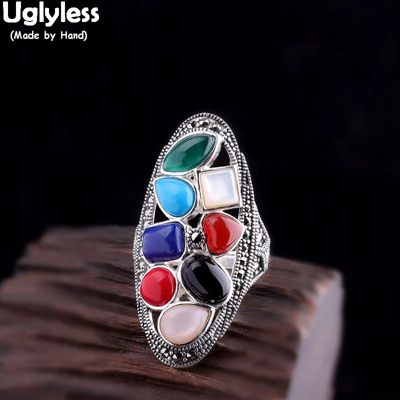 Uglyless Colorful Gemstones Puzzle Rings for Women Exaggerated Wide Open Rings Real 925 Thai Silver