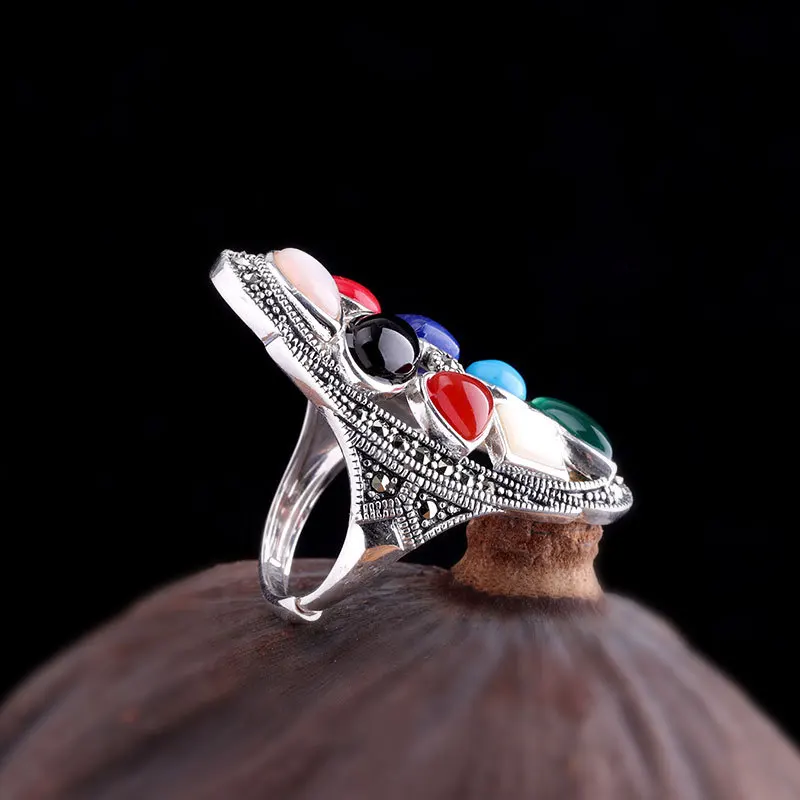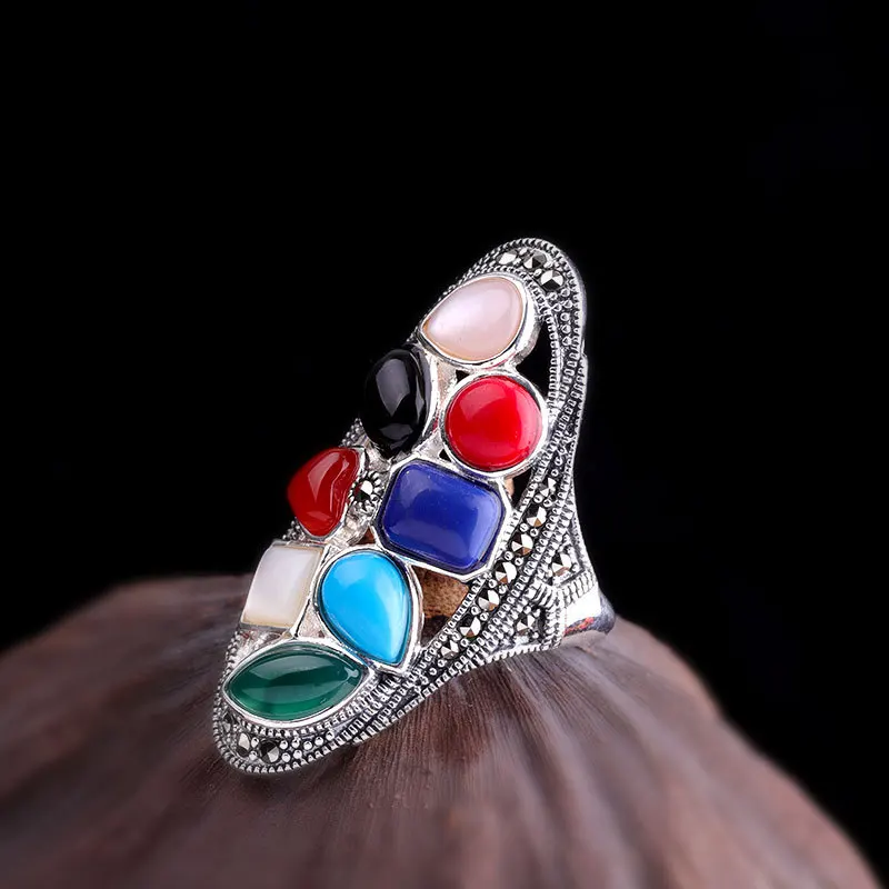 BEST QUALITY Uglyless Colorful Gemstones Puzzle Rings for Women Exaggerated Wide Open Rings Real 925 Thai Silver
